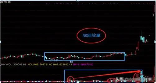 第九式:底部放量、顶部对倒。主要是指个股(或大盘)长期处于底部时成交量有效放大一种量价配合现象。特征:底部放量通常是底部放量,个股(大盘)见底后放量上涨的信号;顶部对到通常是顶部放量,个股(大盘)见顶放量下跌的信号。
